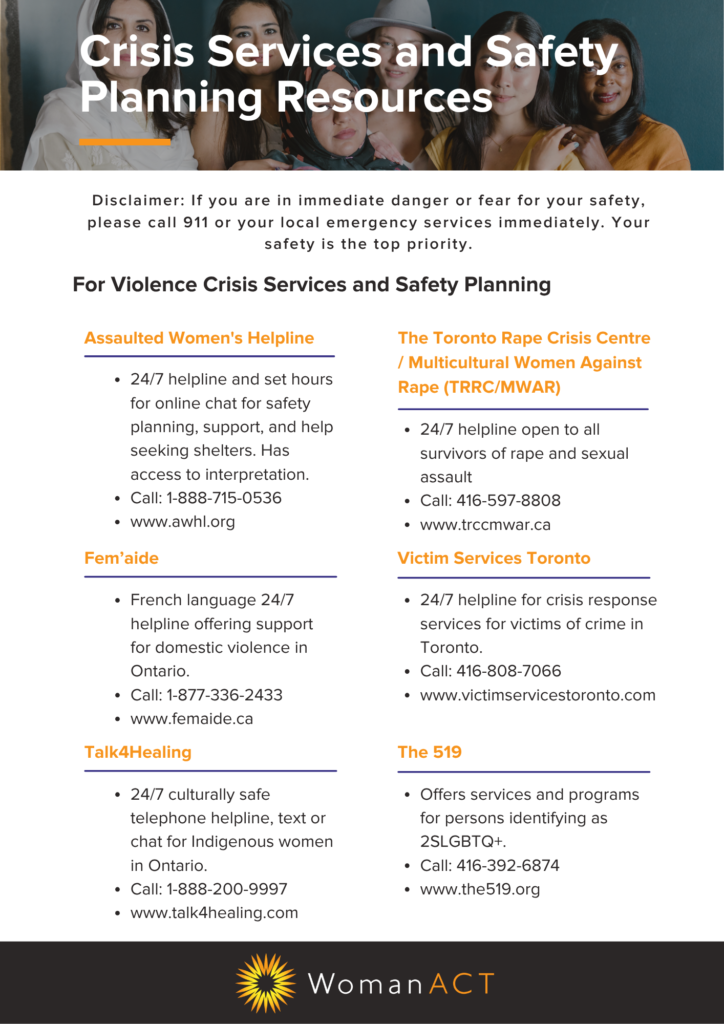 It can be difficult to know where to turn if you’re experiencing violence or concerned that someone else might be. This factsheet highlights crisis supports and safety planning resources for survivors of intimate partner violence.